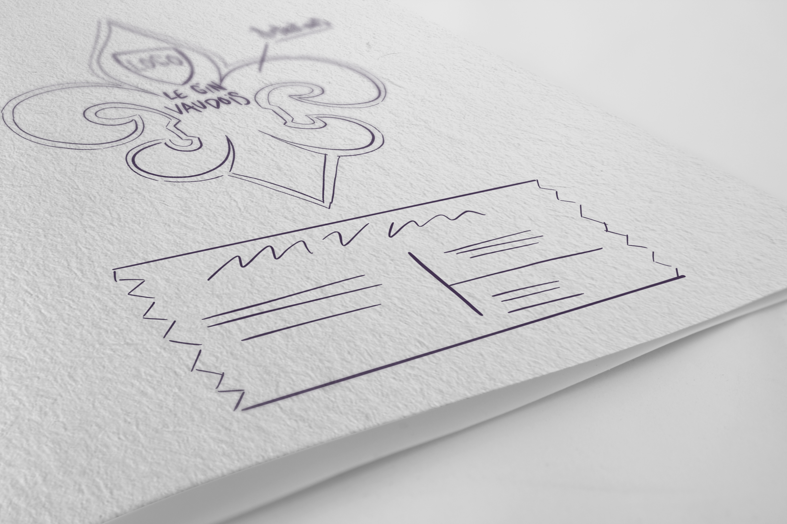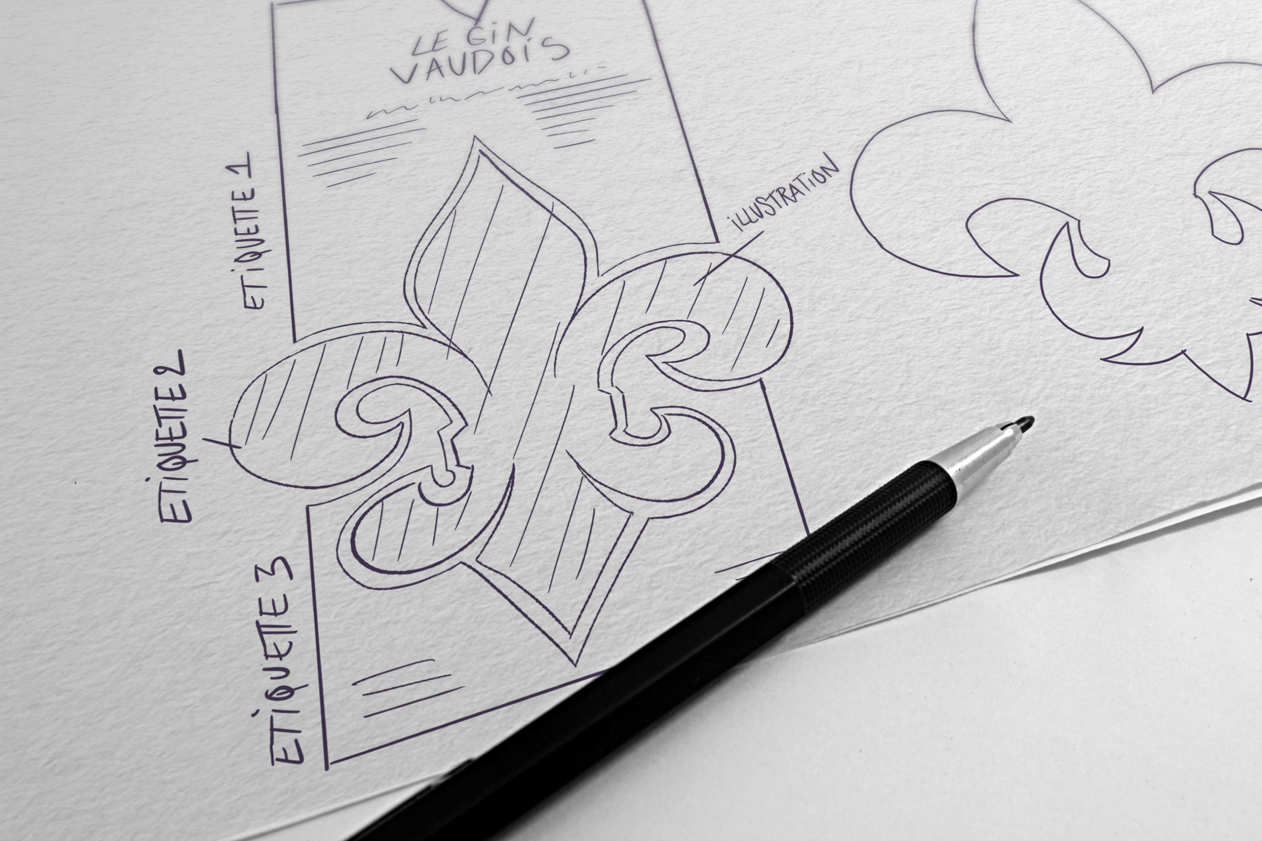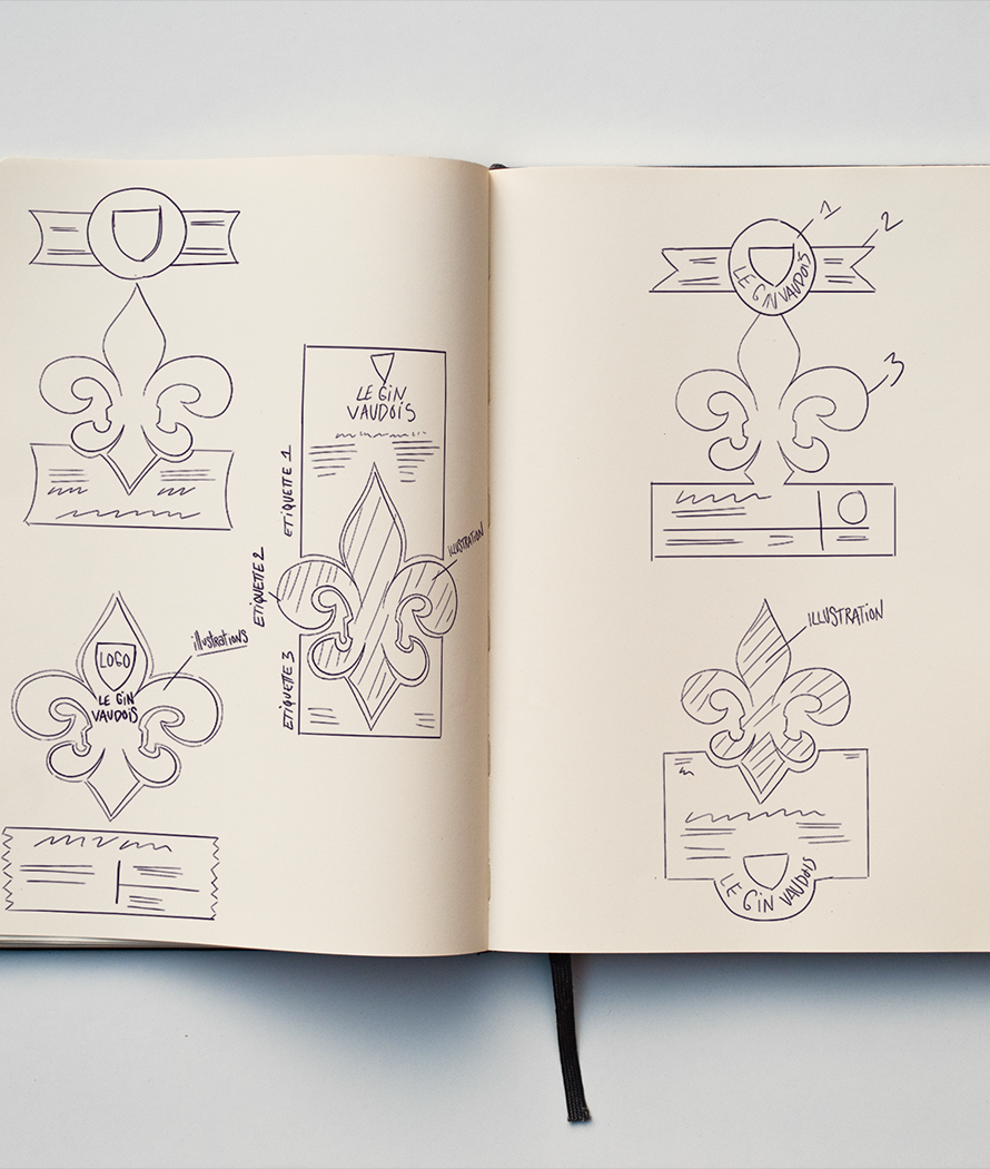 Quand le client nous a confié la création de l’étiquette pour son Gin à base de Chasselas, il avait une demande claire : intégrer la fleur de lys, symbole de son blason familial. Pour le reste, carte blanche. Plutôt que de suivre les codes classiques, nous avons imaginé une étiquette en forme de lys pour surprendre, en y ajoutant une feuille de vigne pour rappeler le terroir du Chasselas.